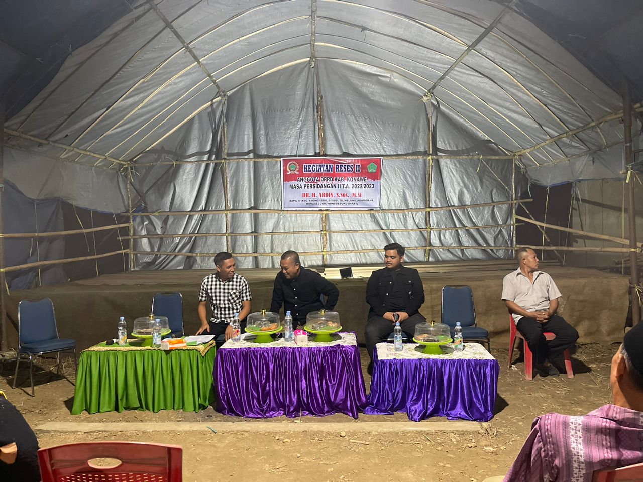 Ketua DPRD Kabupaten Konawe, Dr. Ardin, M.Si yang juga berasal dari Dapil II melakukan reses di Desa Lawonua, Kecamatan Besulutu, kabupaten Konawe, Sulawesi Tenggara (Sultra). Senin, (13/2/2023).