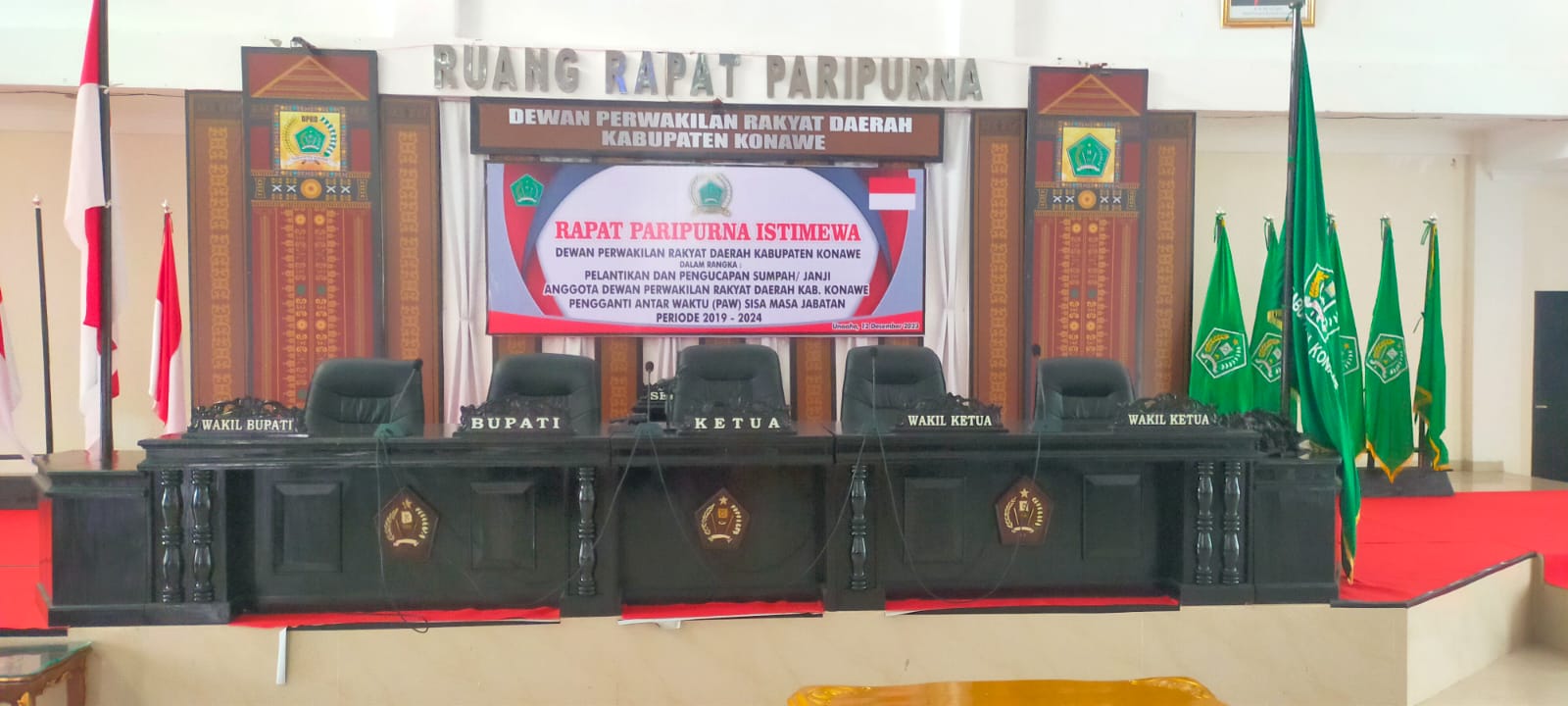 Persiapan pelantikan tersebut dilakukan setelah DPRD Konawe melakukan Rapat Badan Musyawarah (Bamus) dengan agenda membahas peresmian pemberhentian dan pengangkatan Pengganti Antar Waktu (PAW) anggota DPRD Konawe dari Fraksi Partai Bulan Bintang (PBB).