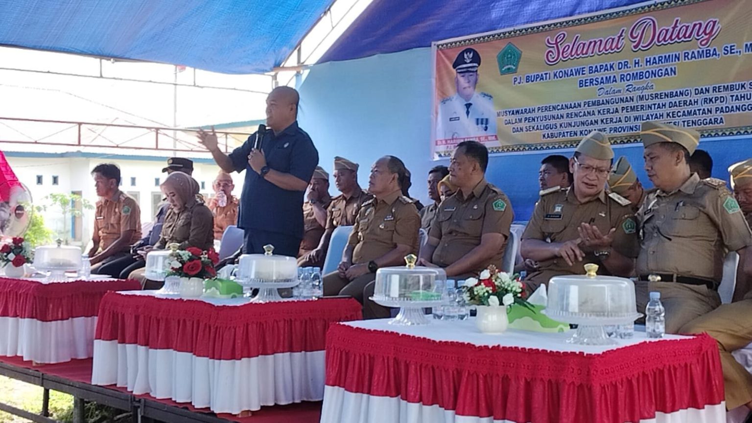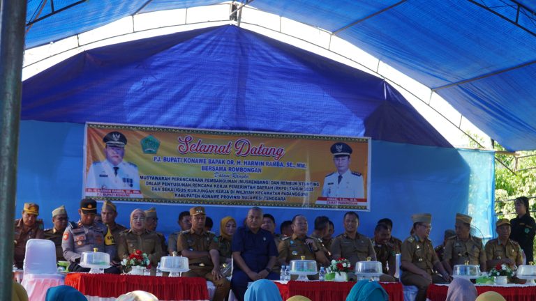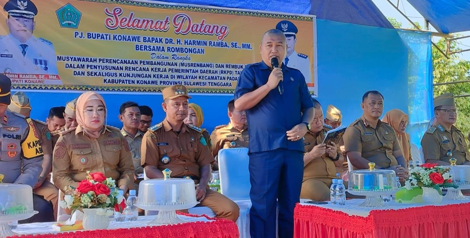 KONAWE – DR. H. Ardin, S.Sos.,M.Si, selaku Ketua DPRD Konawe bersama Pj Bupati Konawe DR. H. Harmin Ramba, SE.,MM beserta Sekda dan seluruh Pimpinan OPD Kabupaten Konawe turut hadir pada kegiatan Musrenbang di Kecamatan Padangguni, Kabupaten Konawe, Sulawesi Tenggara (5/2/2024).