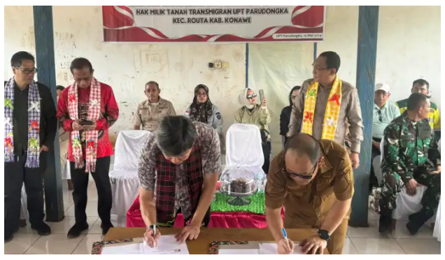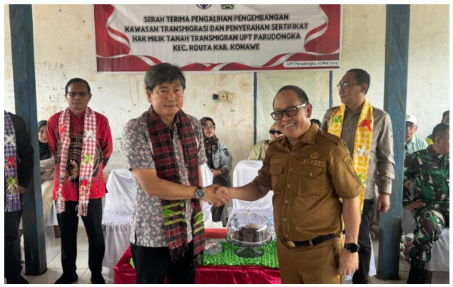 Sementara itu, PJ Bupati Konawe, Harmin Ramba, dalam sambutannya menerangkan pentingnya kepastian hukum bagi masyarakat Transmigrasi. Ia menegaskan bahwa apa yang menjadi tuntutan warga UPT Parudongka telah terwujud dengan penyerahan sertifikat ini.