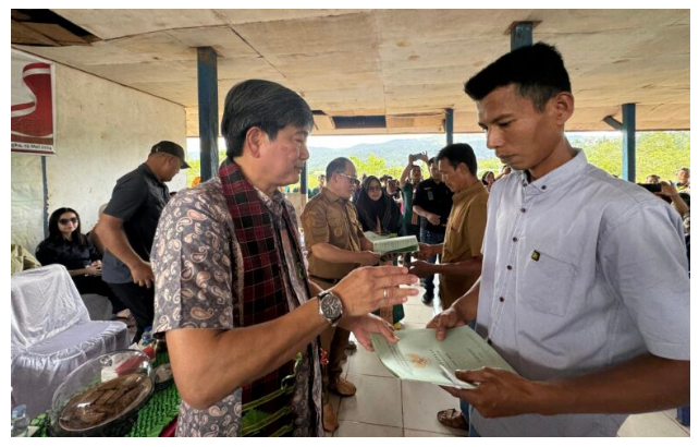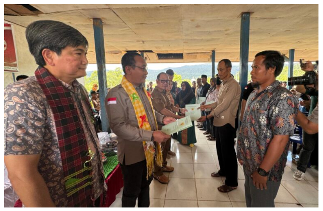 KONAWE – Pemerintah Kabupaten (Pemkab) Konawe, Sulawesi Tenggara (Sultra), serakan sertifikat hak milik tanah kepada warga sebanyak 533. Penyerahan berlangsung di UPT Parudongka, Desa Parudongka, Kecamatan Routa, Kabupaten Konawe, Minggu (19/5/2024).