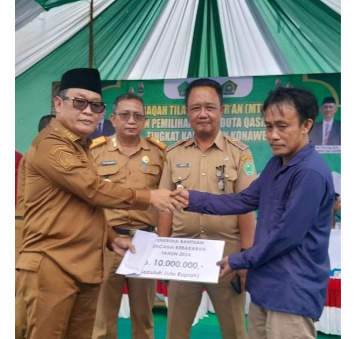 KONAWE – Selain menyalurkan bantuan kepada masyarakat yang menjadi korban akibat angin kencang di Kabupaten Konawe, Penjabat (Pj) Bupati Konawe, Harmin Ramba, juga memberikan bantuan kepada warga korban kebakaran, Selasa (21/5/2024)