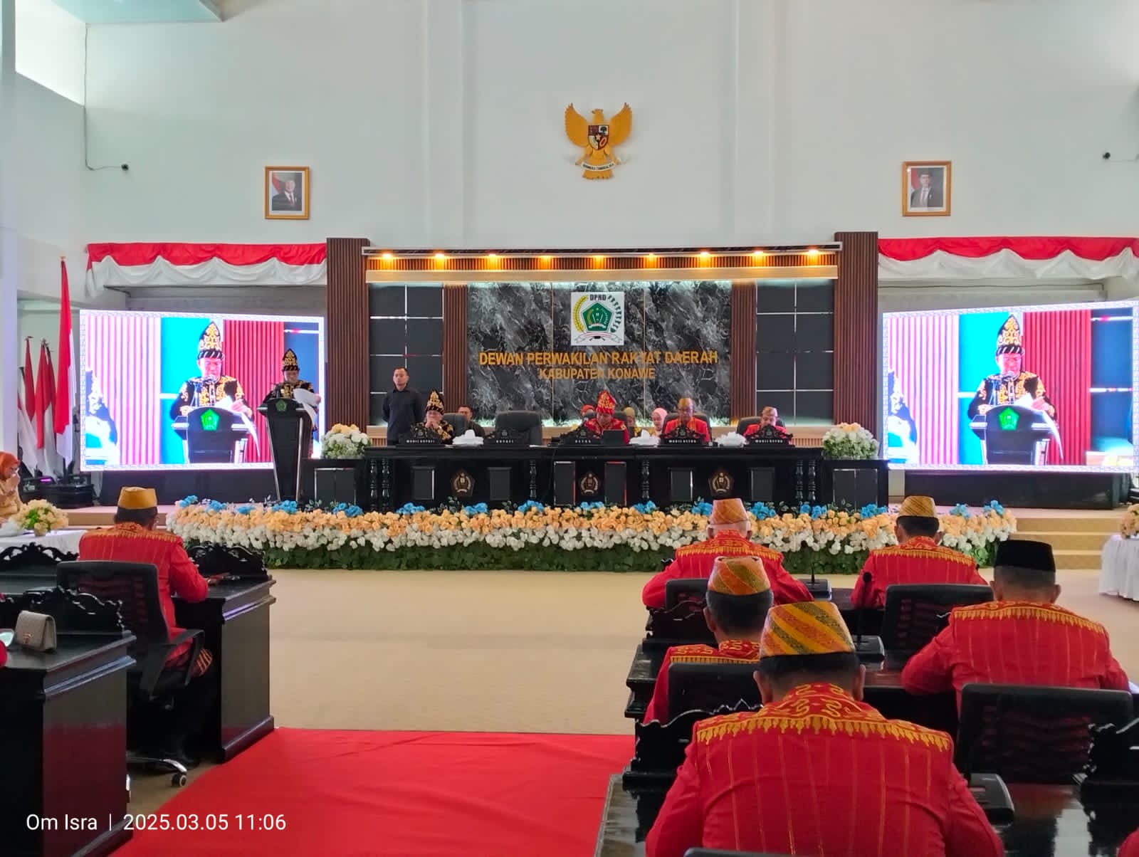KONAWE – Dewan Perakilan Rakyat Daerah (DPRD) Kabupaten Konawe, Sulawesi Tenggara (Sultra) menggelar Rapat Paripurna (Ranpur) Istimewa Peringatan Hari Ulang Tahun (HUT) ke-65 kabupaten Konawe, Rabu (05/03/2025).