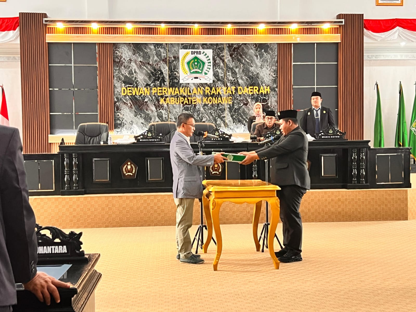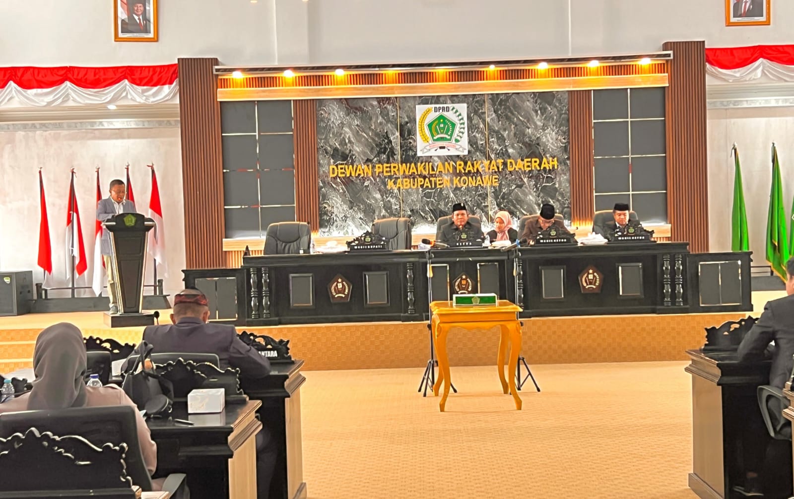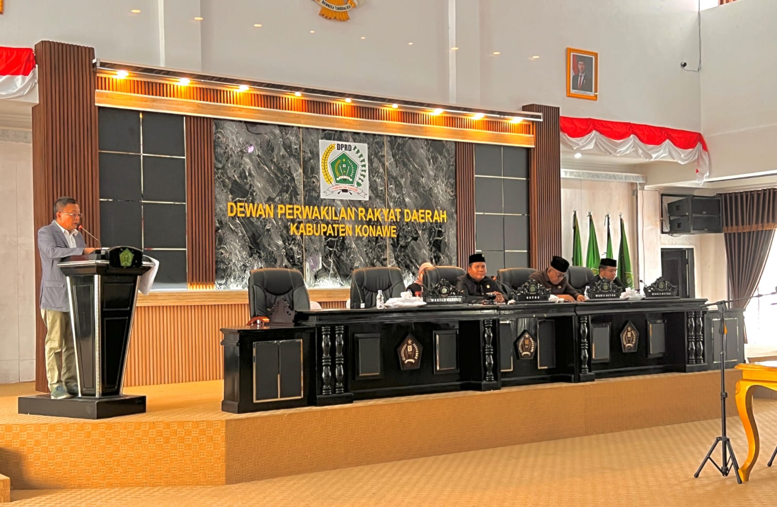 Hal tersebut disampaikan dalam Rapur DPRD Konawe dengan agenda penyerahan dokumen KUA-PPAS dari pihak eksekutif kepada legislatif yang digelar pada Kamis (6/11/2025) di Ruang Sidang Utama DPRD Konawe.