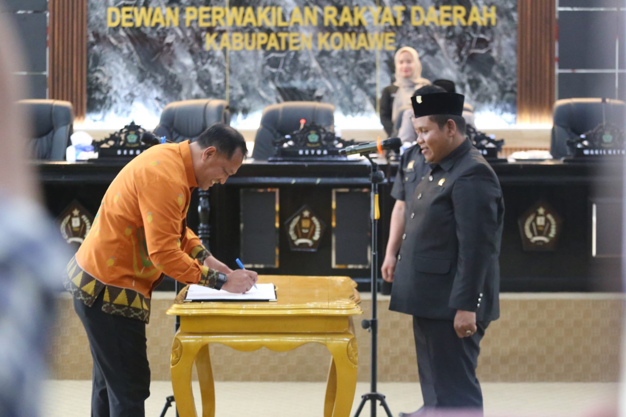 Penandatanganan dokumen kesepahaman dilakukan langsung oleh Ketua DPRD Konawe, I Made Asmaya, sementara dari pihak eksekutif diparaf oleh Sekretaris Daerah karena Bupati berhalangan hadir.