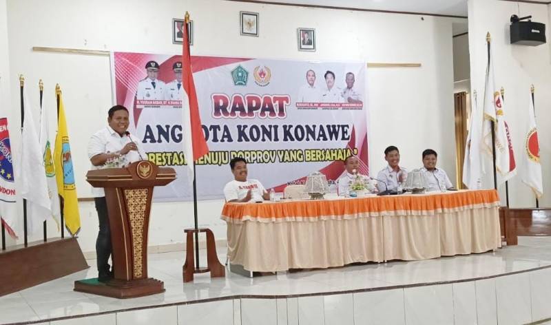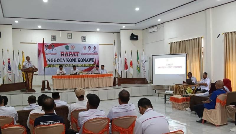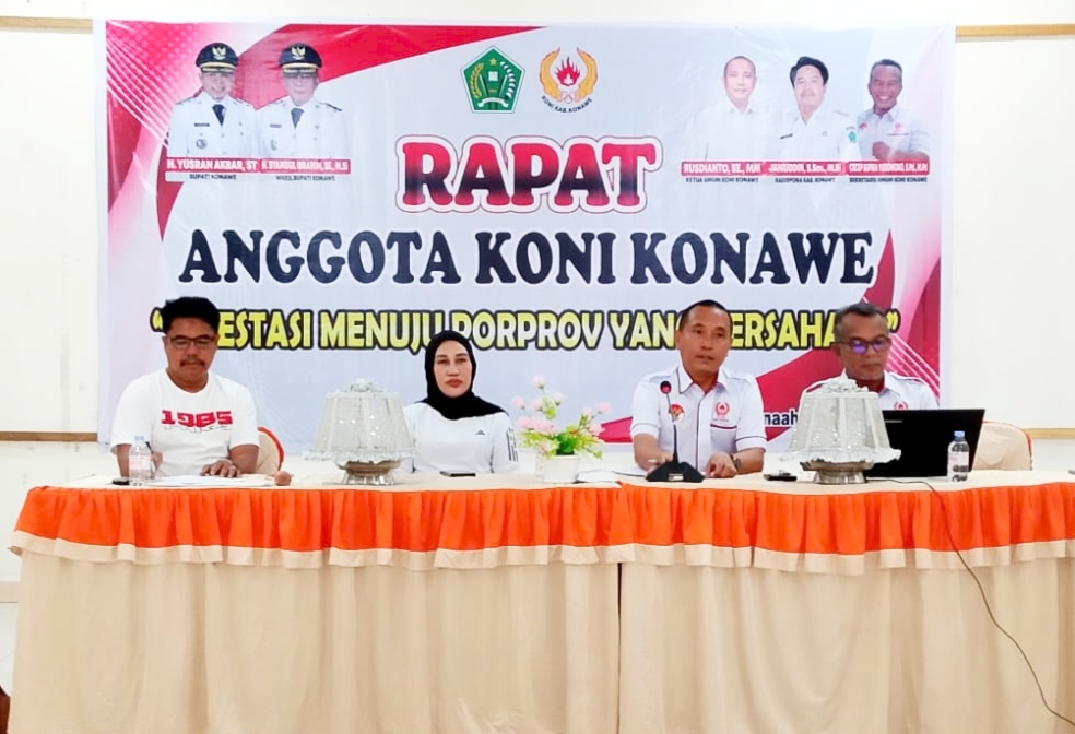 KONAWE, – Komite Olahraga Nasional Indonesia (KONI) Kabupaten Konawe mendaa dukungan penh dari Dewan Perwakilan Rakyat Daerah (DPRD) Konawe, dalam rangka menghadapi Pekan Olahraga Provinsi Sulawesi Tenggara (Porprov Sultra) 2026. Hal ini disampaikan oleh Ketua DPRD Kabupaten Konawe, I Made Asmaya, S.Pd., M.M., saat menyampaikan sambutan dalam Rapat Anggota KONI yang digelar di salah satu hotel di Kota Unaaha.